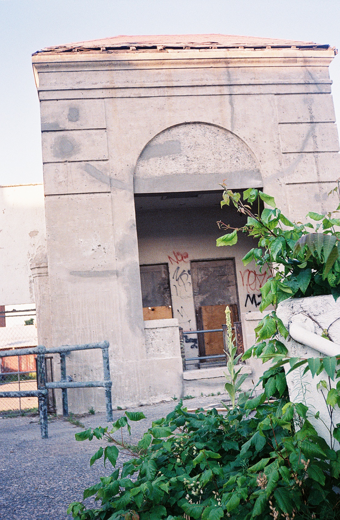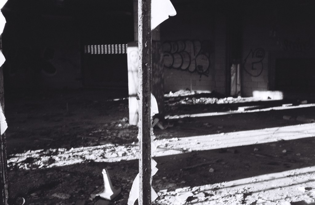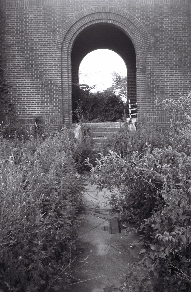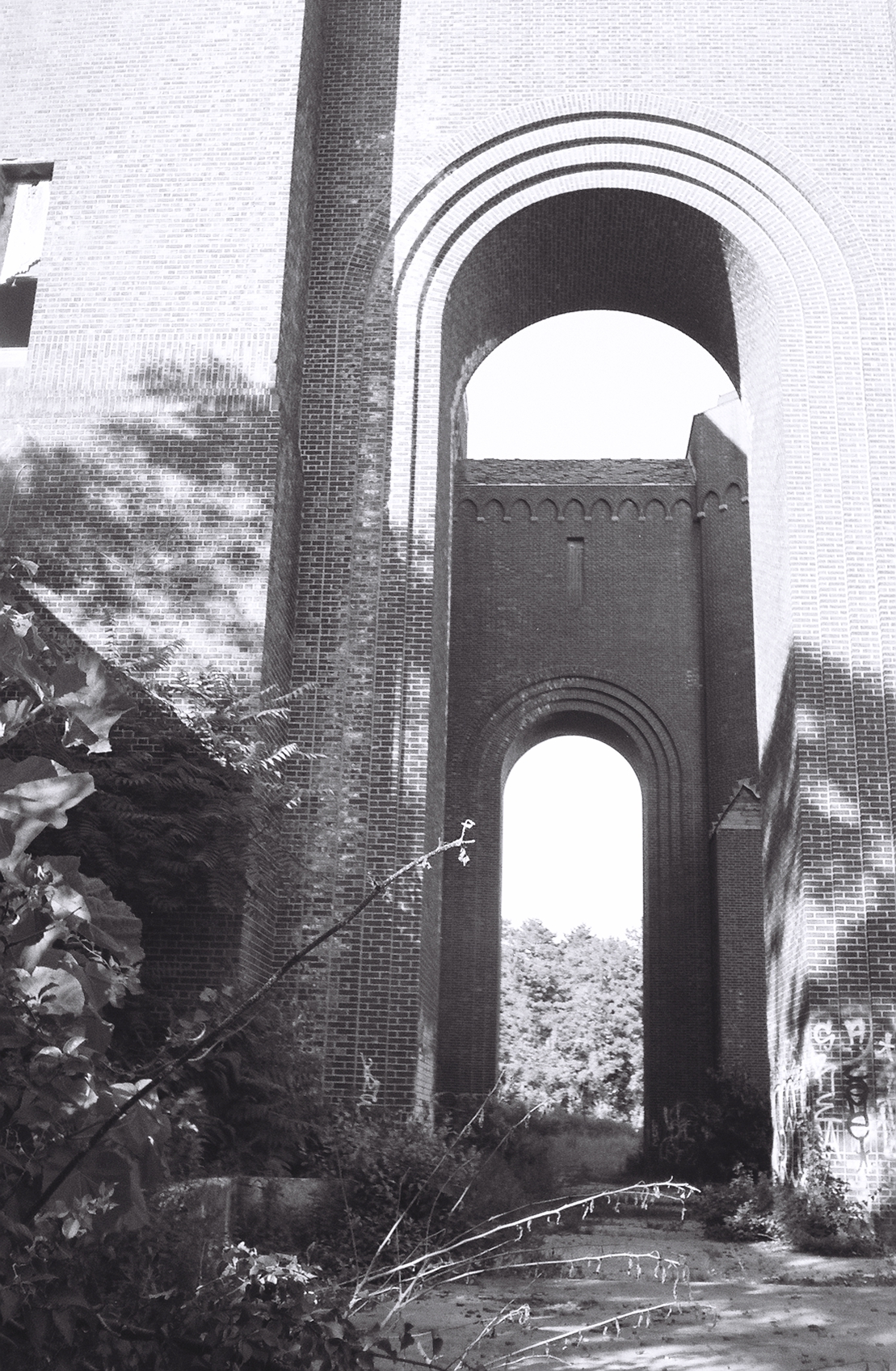 After failing to get in from the back, we decided to try another way. While scoping the perimeter, we noticed on the side of the property an old aqueduct looking structure with rails on top. Next to the aqueduct structure was a huge brick building with no windows and an enormous archway. We walked over and found two or three little rooms on the side of the huge building, but no stairway into the facility. We also found various relics under the aqueduct that were from inside the buildings such as a couch, old cassette tapes and photographs damaged by the rain. Realizing that we could not feasibly enter through the back or side of the property, we decided to go to the front of the building through an opening in the gate.