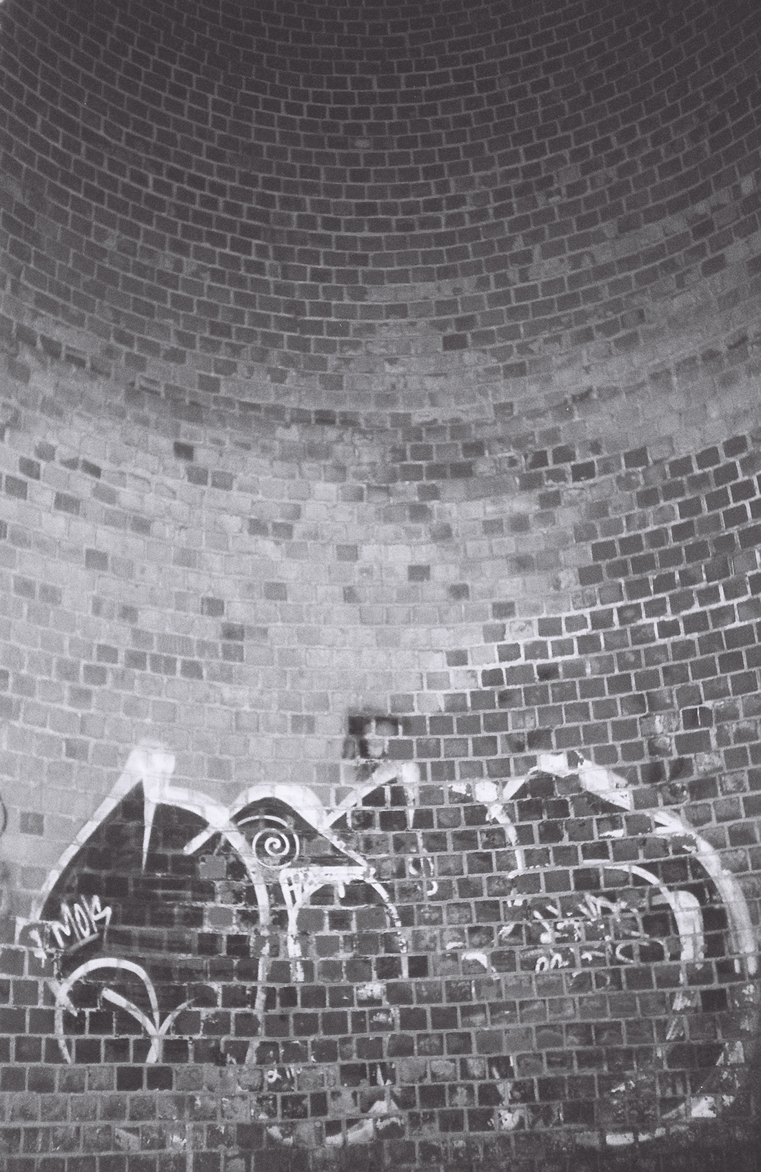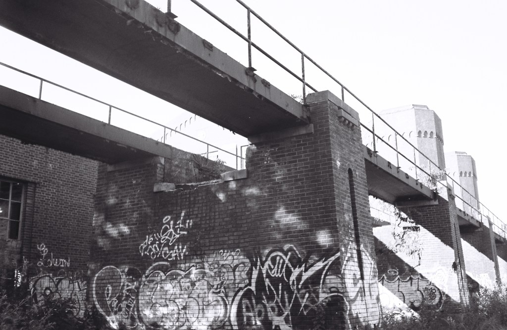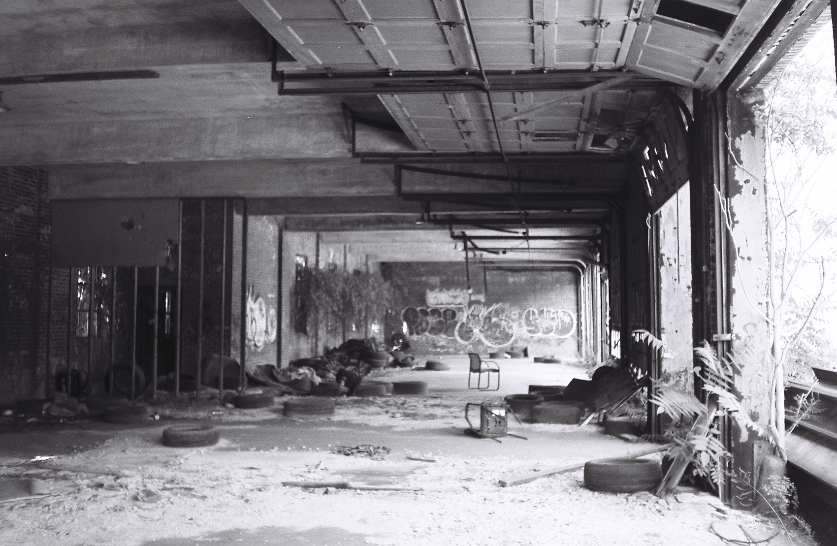 After failing to get in from the back, we decided to try another way. While scoping the perimeter, we noticed on the side of the property an old aqueduct looking structure with rails on top. Next to the aqueduct structure was a huge brick building with no windows and an enormous archway. We walked over and found two or three little rooms on the side of the huge building, but no stairway into the facility. We also found various relics under the aqueduct that were from inside the buildings such as a couch, old cassette tapes and photographs damaged by the rain. Realizing that we could not feasibly enter through the back or side of the property, we decided to go to the front of the building through an opening in the gate.