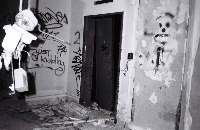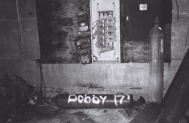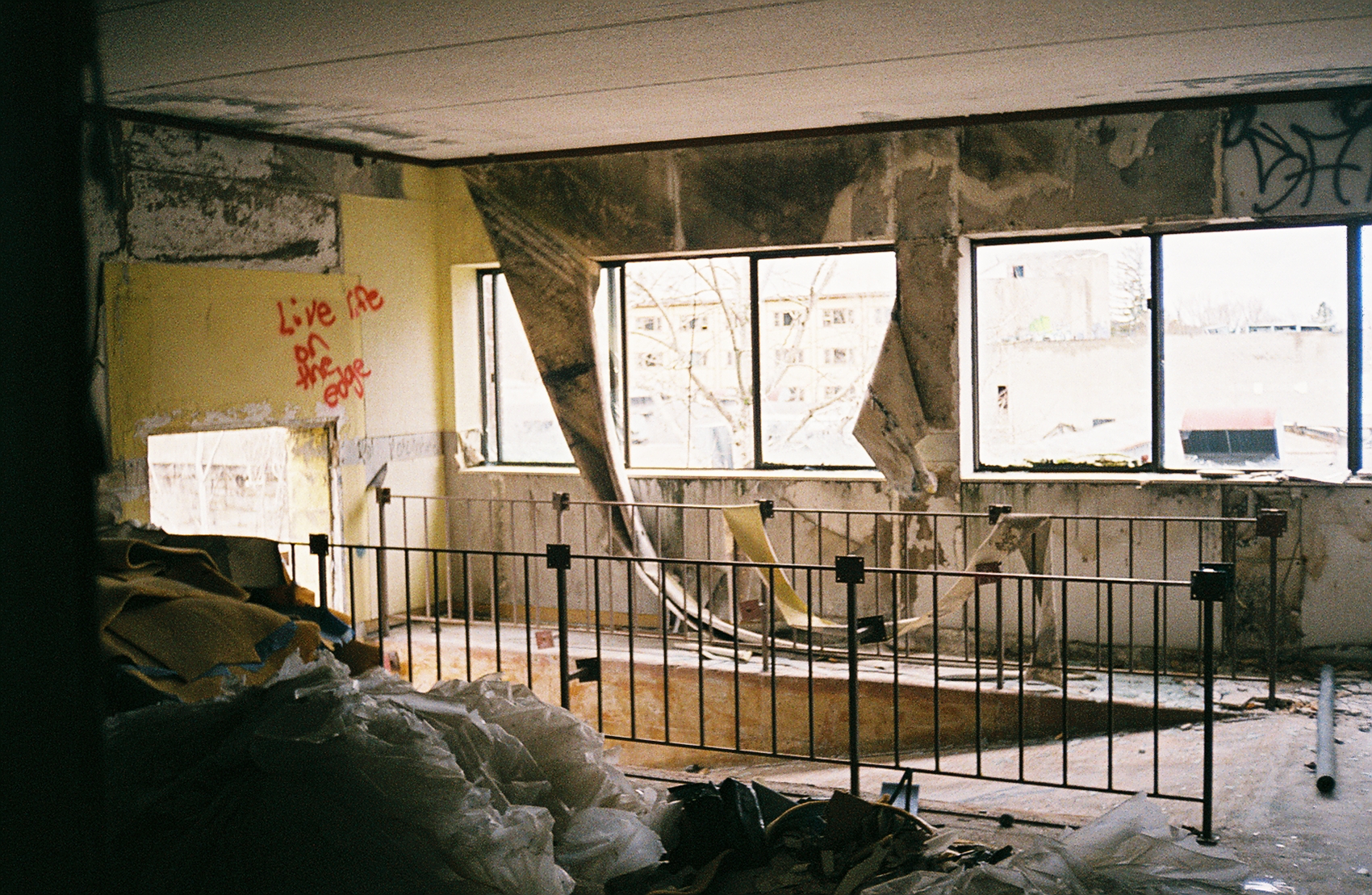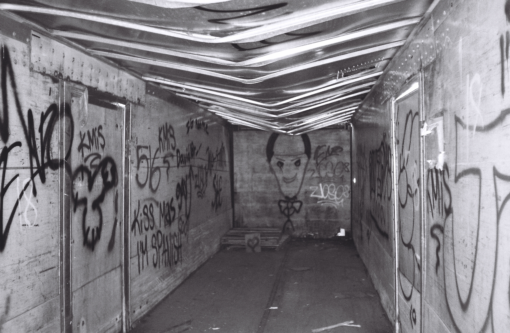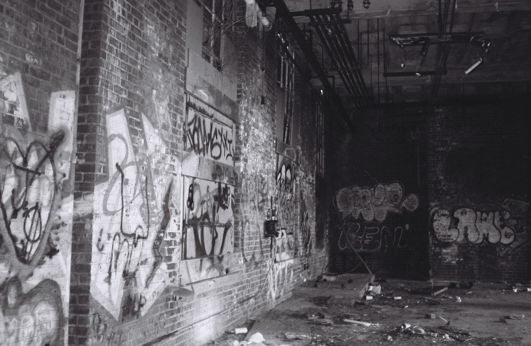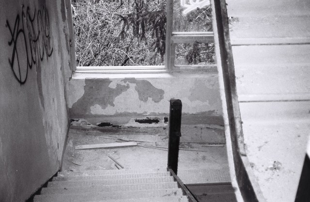 Something creepy that I only noticed after developing my film was that there was a noose tied to the ceiling in the performance space. The noose was tied too small to be intended for human use, but could probably fit a small animal, or perhaps it was put there to scare people.