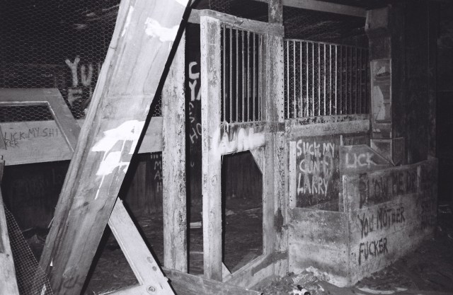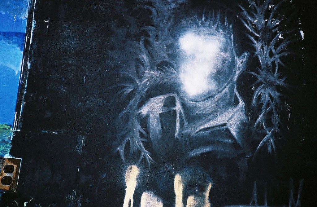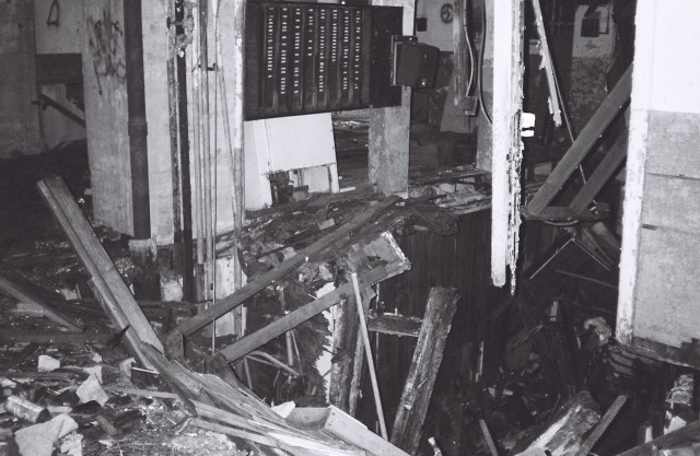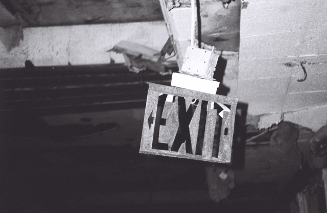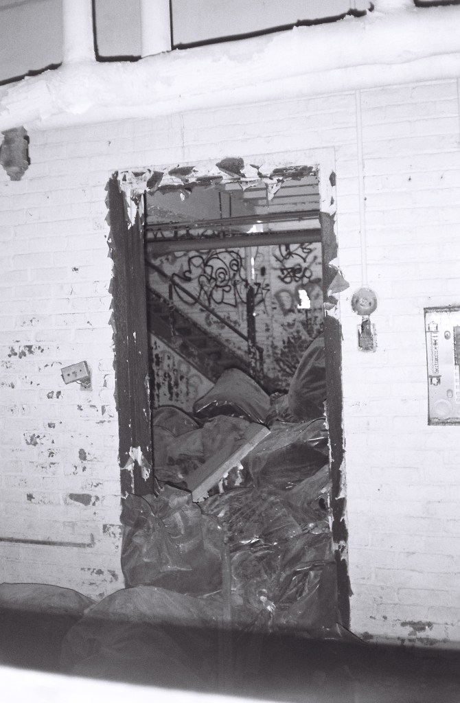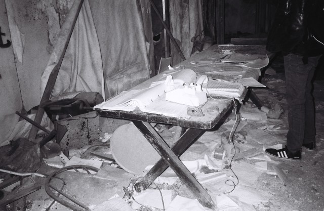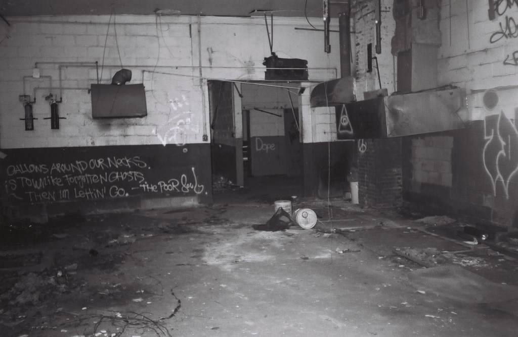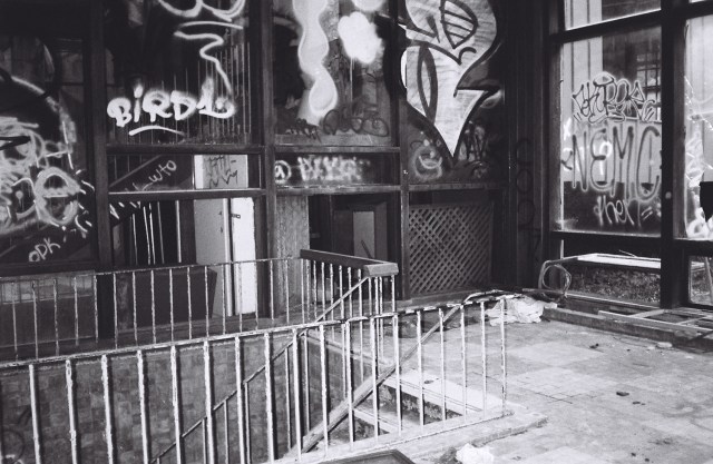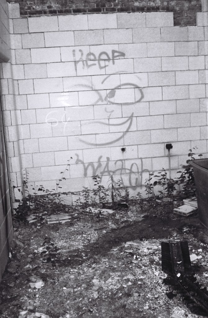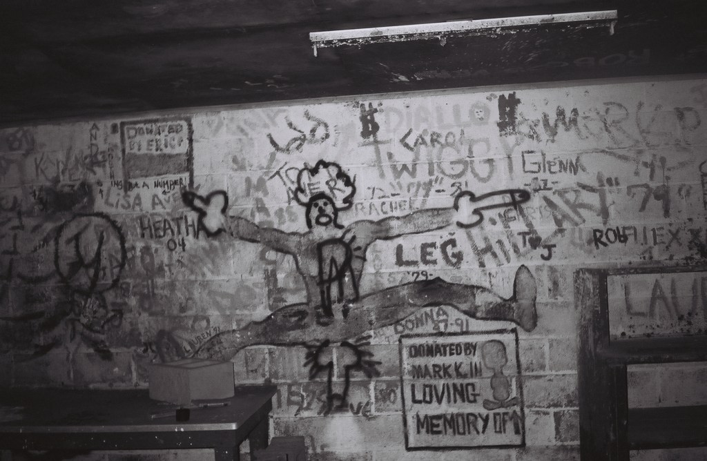 Something creepy that I only noticed after developing my film was that there was a noose tied to the ceiling in the performance space. The noose was tied too small to be intended for human use, but could probably fit a small animal, or perhaps it was put there to scare people.