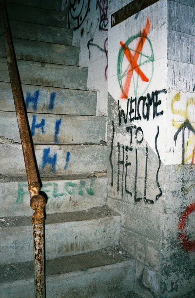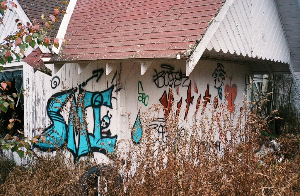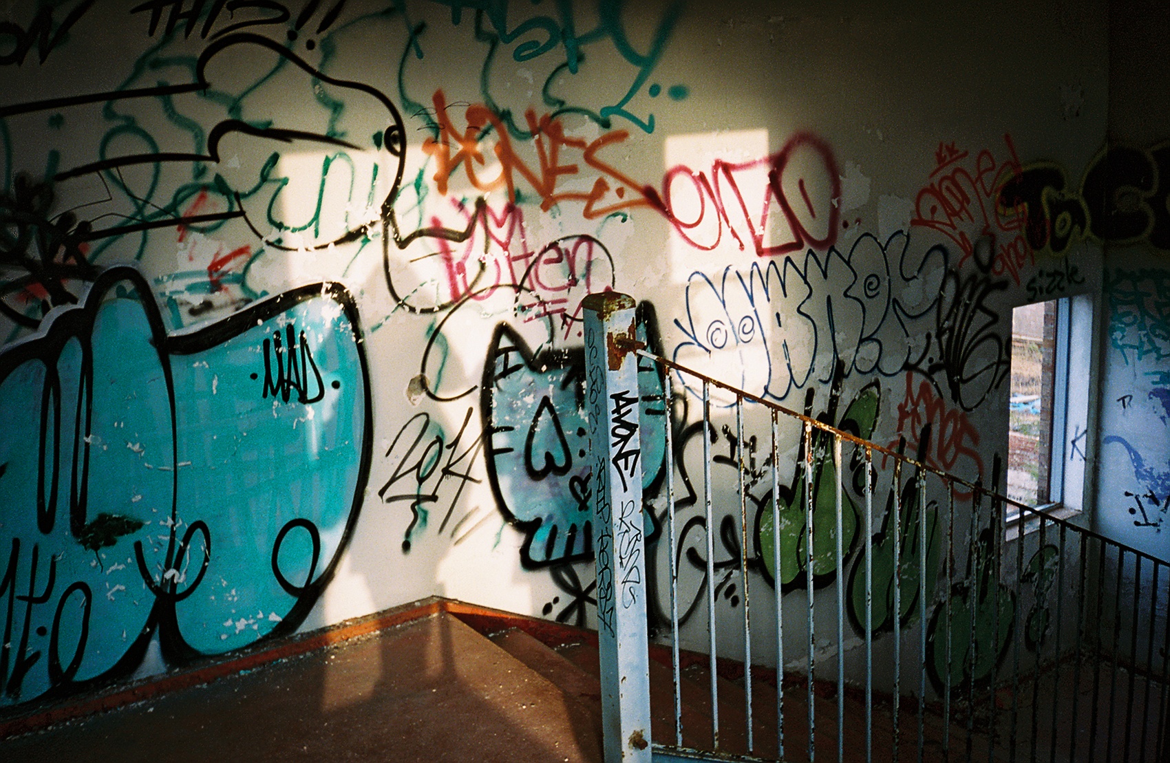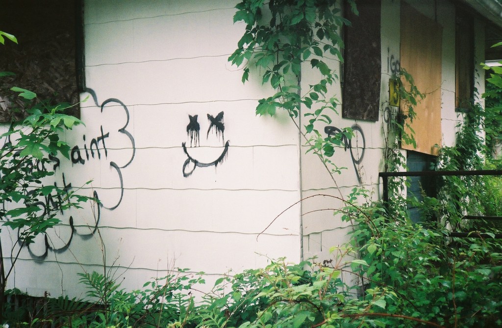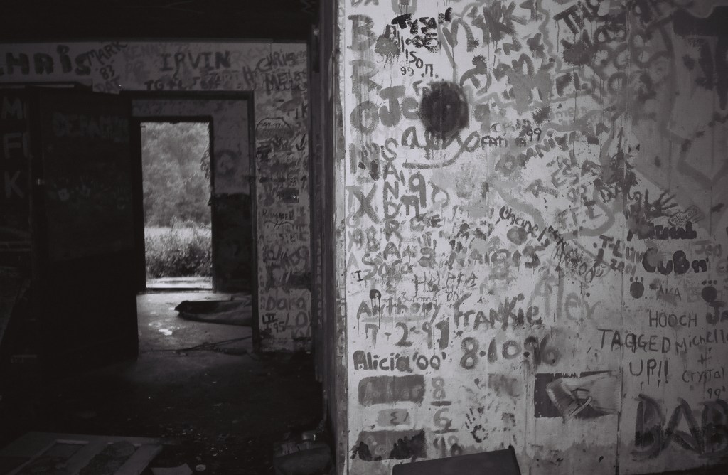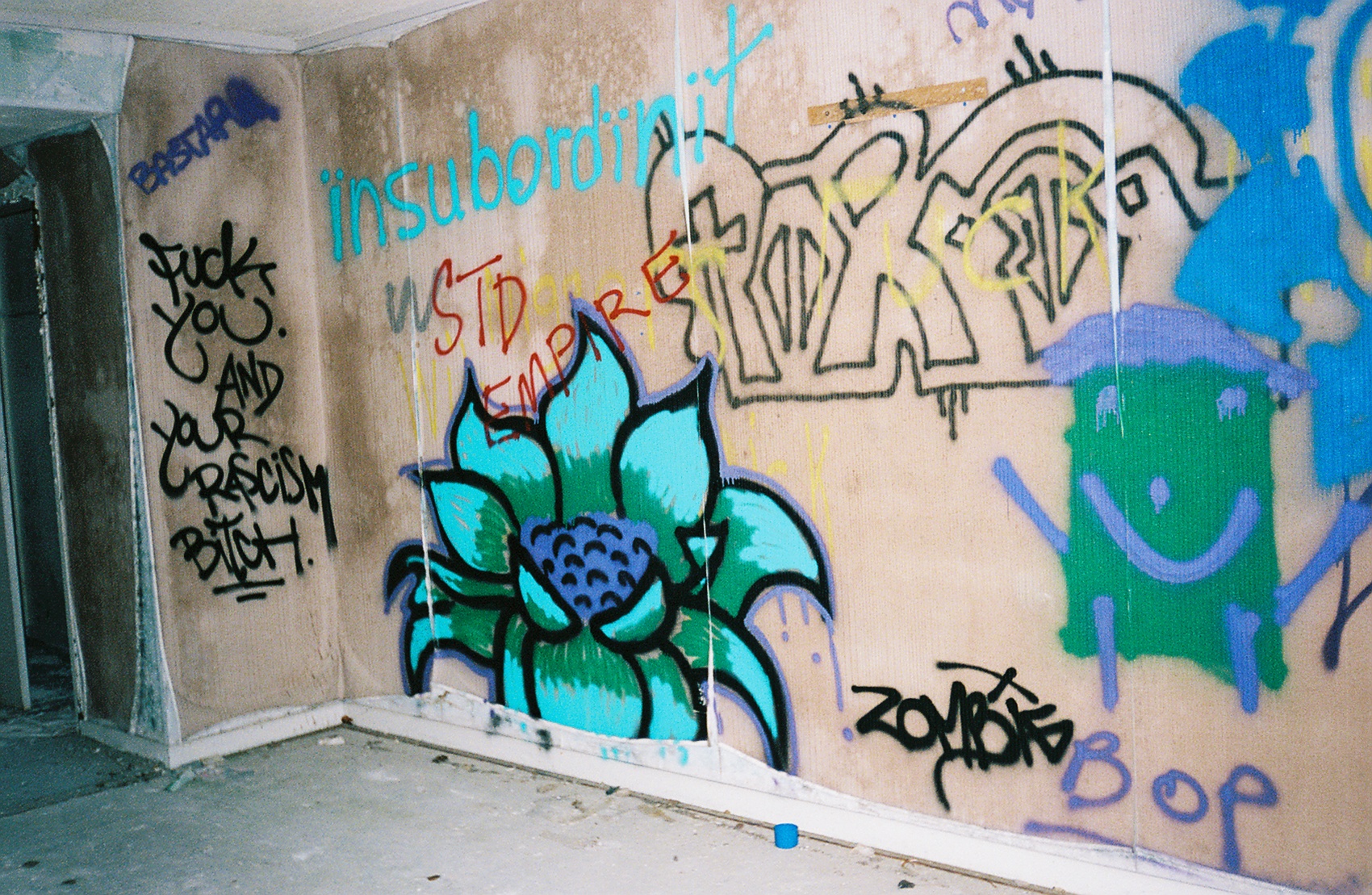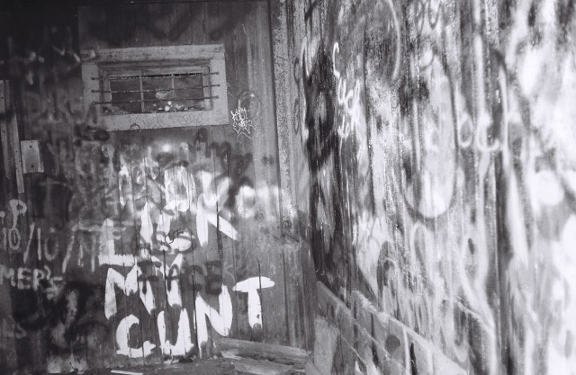 Profanity House is the first place that me and my boyfriend went urban exploring. Unfortunately when we got there 2 of the 3 buildings were completely burned down and only one building remained, but it was in such bad shape that we didn’t even go fully in. Never the less, I still managed to take some cool pix of what remained. As you can see, the walls are covered with profanities, thus the name profanity house.