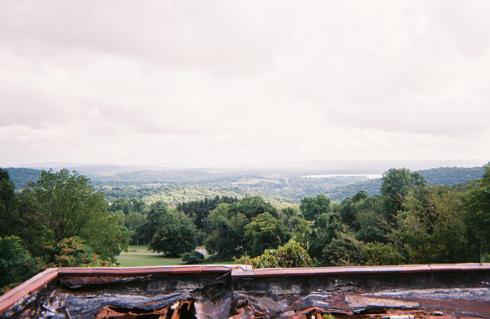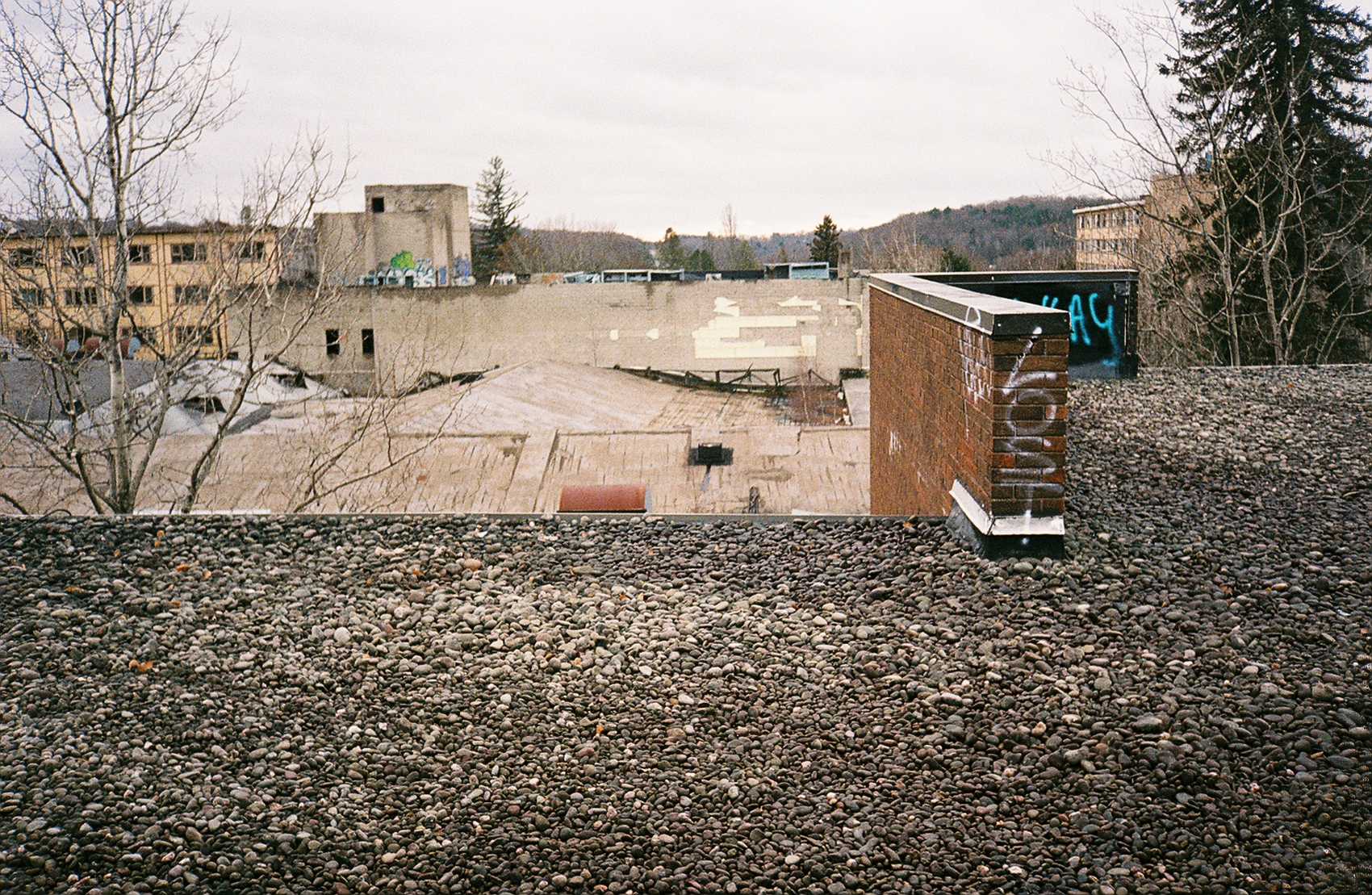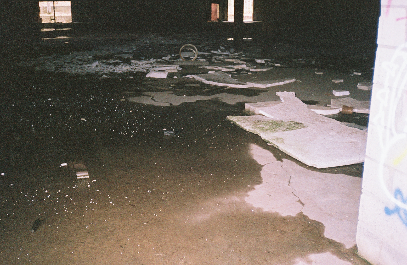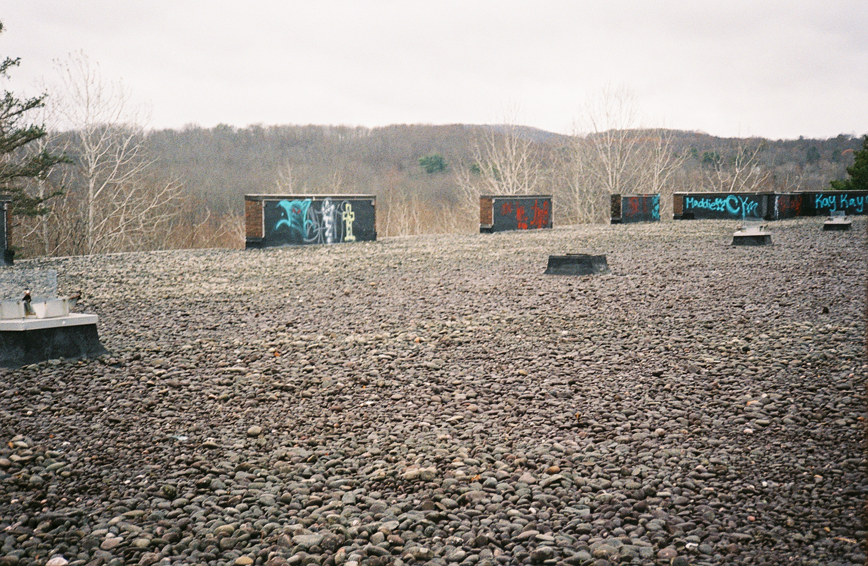 Grossinger is an erie place with sounds of slamming doors and the howling of the wind. It is dark and wet inside the buildings, lit only where there are windows, and in some areas the ceilings or floors are completely or partially caved-in. After seeing the white cabin we explored the rest of the grounds, we went to the kitchen/big dining area, and from there entered one of the buildings with atleast 6 floors of hotel rooms, we went up to the rooftop of that building and walked to the indoor pool before heading home. This being our initial visit, we were able to map out in our heads the layout of the space so we have a better idea of where to go the next time we went to Grossinger. Ariel views from googlemaps also came in handy with navigating our way around.