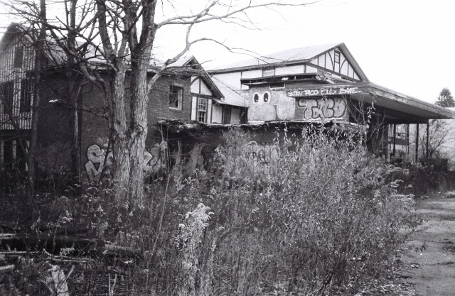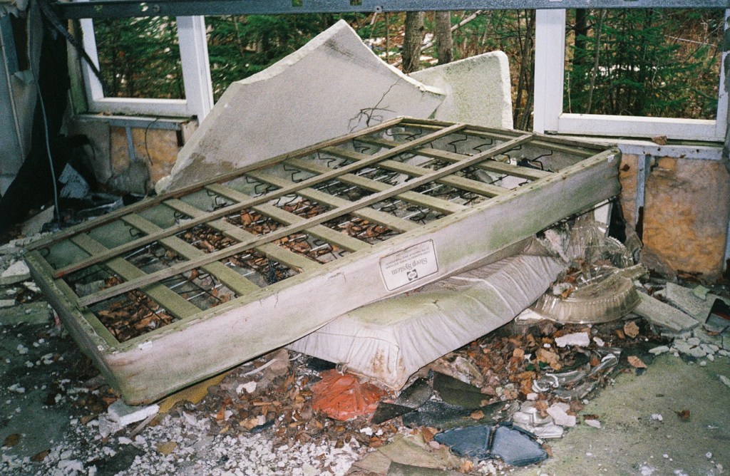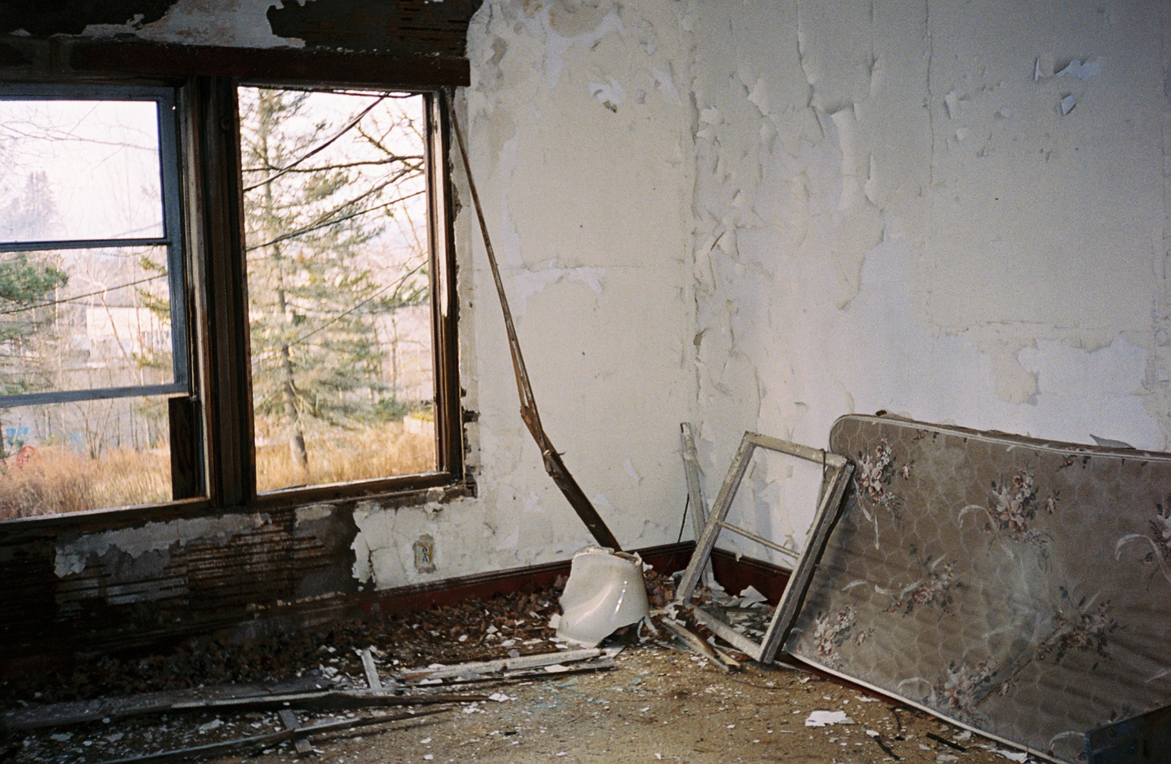 The collapse of Pennsylvania’s once prosperous industries has transformed the landscape into a desolate wasteland. On the drive to Birchwood, we saw town after town filled with abandoned storefronts and houses as a result of economic decline. Some of these sites may be heavily patrolled and guarded by cops and veterans, especially in Pennsylvania. Our time at Birchwood was cut short for this reason, so while there is a lot to explore in Pennsylvania, we prefer upstate NY and NJ sites more since they tend to be more chill. Birchwood had been a couples resort and a popular site for honeymooners. In the late 90s the resort struggled to stay open and began hosting fetish parties and events called spanking parties. A few years later Birchwood went out of business and has been abandoned ever since.
