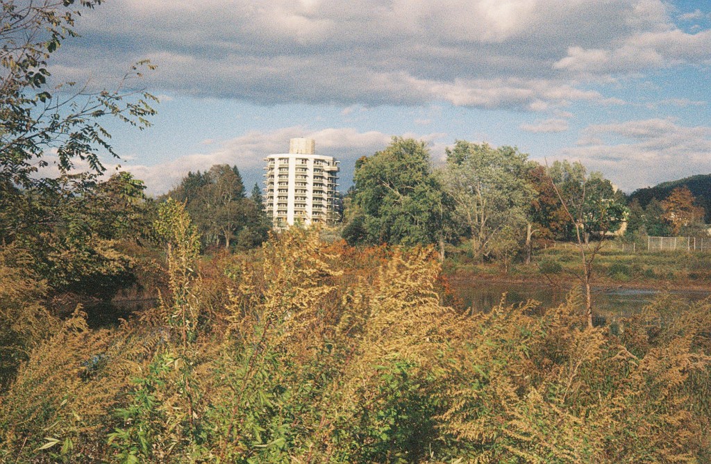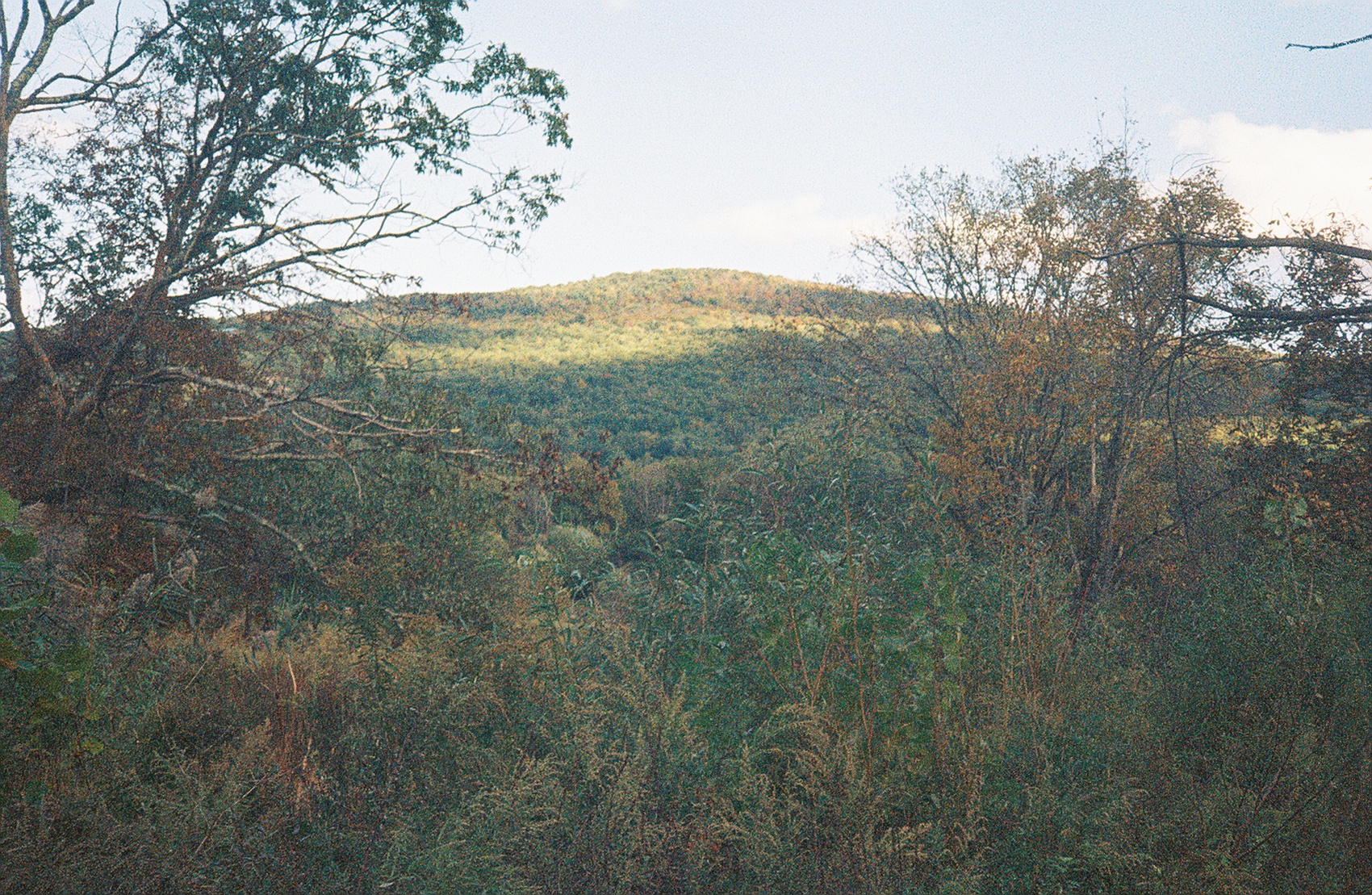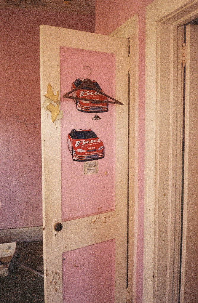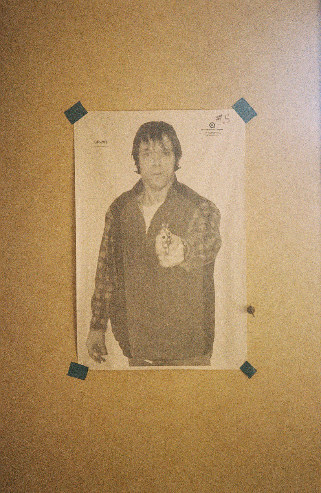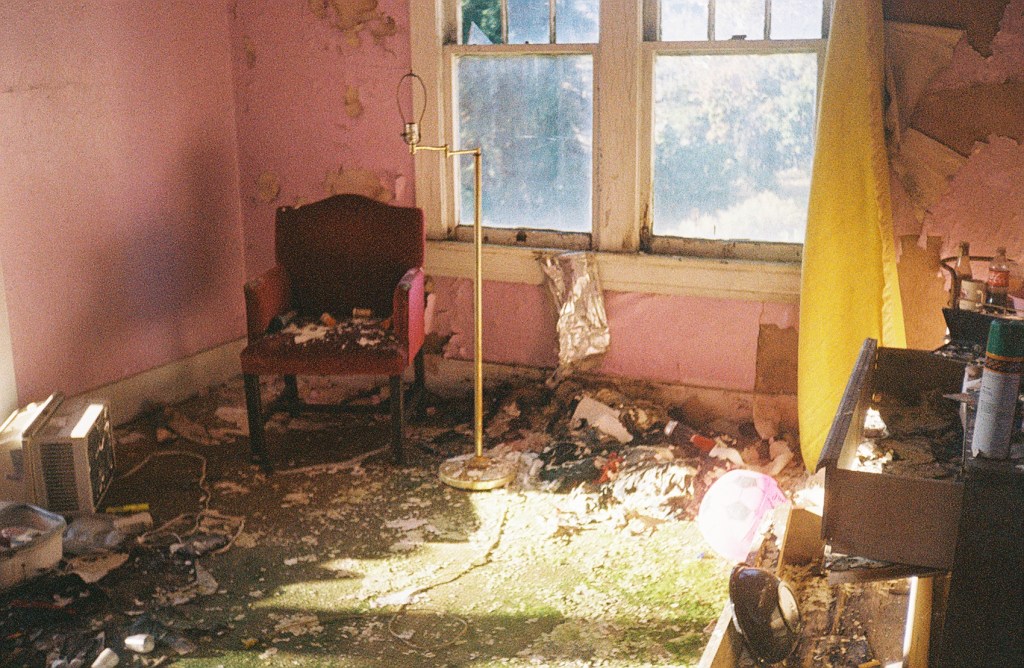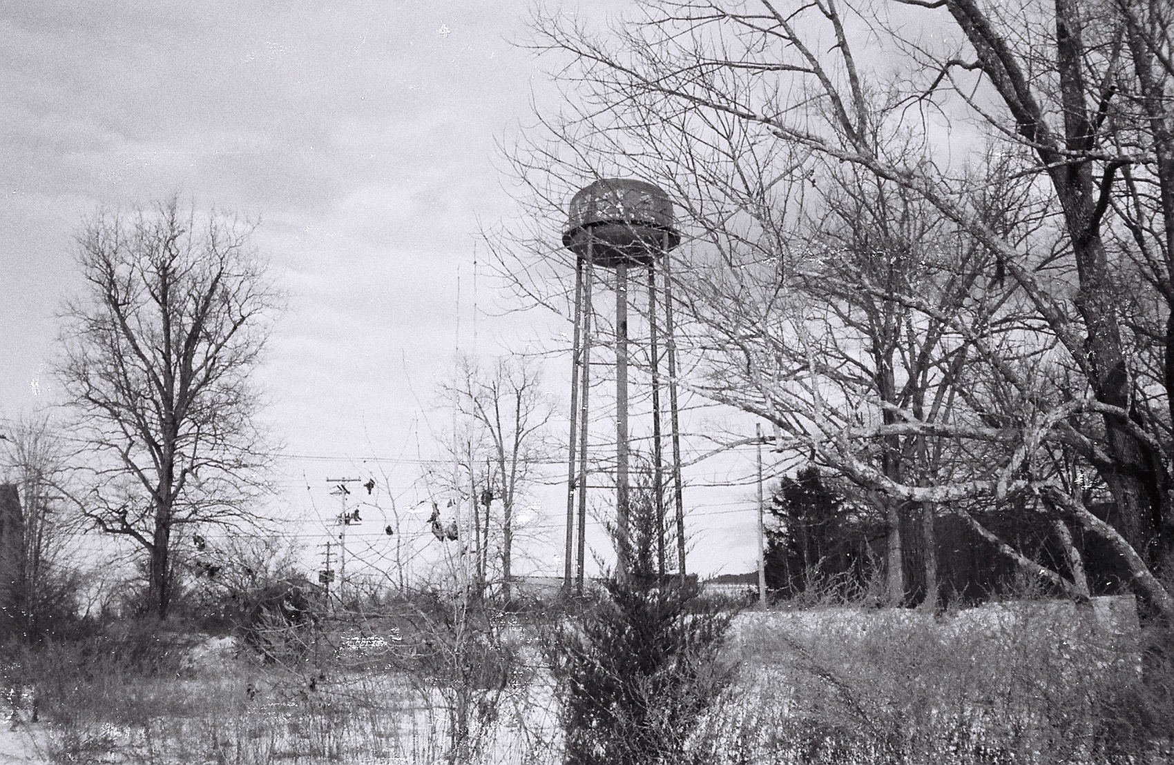 We got in through an opening in the fence and walked through the woods to a bridge. The bridge looked like it had seen better days but we decide to trust it anyways since it was the only way to cross the river. Once over the bridge, we were no longer in the woods. Next to us was a pond and on the other side of pond is the property. We walked around the pond until we got to a ditch with an industrial halfpipe sticking out. We climb over the ditch and find remnants of a road that used to exist and leads to the property. Down the road on the left was a small outdoor swimming pool and tennis courts and on the right was a children’s day care. This is the first building we entered. The daycare was pretty bad shape – colorful paint was pealing off the walls, the ground was wet and in some areas the floor was completely caved in. We continued down the road to the main area where the tower was. The next building we visited was where the old reception hall used to be. We entered through what looked to be the old lobby. The glass door had been shattered and only the door frame remained. We walked from the lobby into the grand reception hall, lined with ceiling to floor glass windows, half of which were shattered, the carpet was wet and degraded but sturdy enough for us to make our way through, The room was practically empty other than a couple of tables left over and tattered curtains. Then we went upstairs to a hallway lined with hotel rooms. Something that really freaked me out was the posters on the walls. The posters were of different men pointing guns and we found 3 or 4 of them in all. The gaze and directness of the photographs seemed so real and felt like a warning sign. We explored one more building before leaving. This we like to refer to as the porn house, since it is full of old porn magazines and heroin needles. It had high ceilings, a big fire place in the center of the room and spiral staircases on either side of the fire place that led to the 2nd floor. There was a painting left behind of a sun and a tree, but it was too big to take it with us so we left it in the fireplace to pick it up next time. Unfortunately it was gone by then.