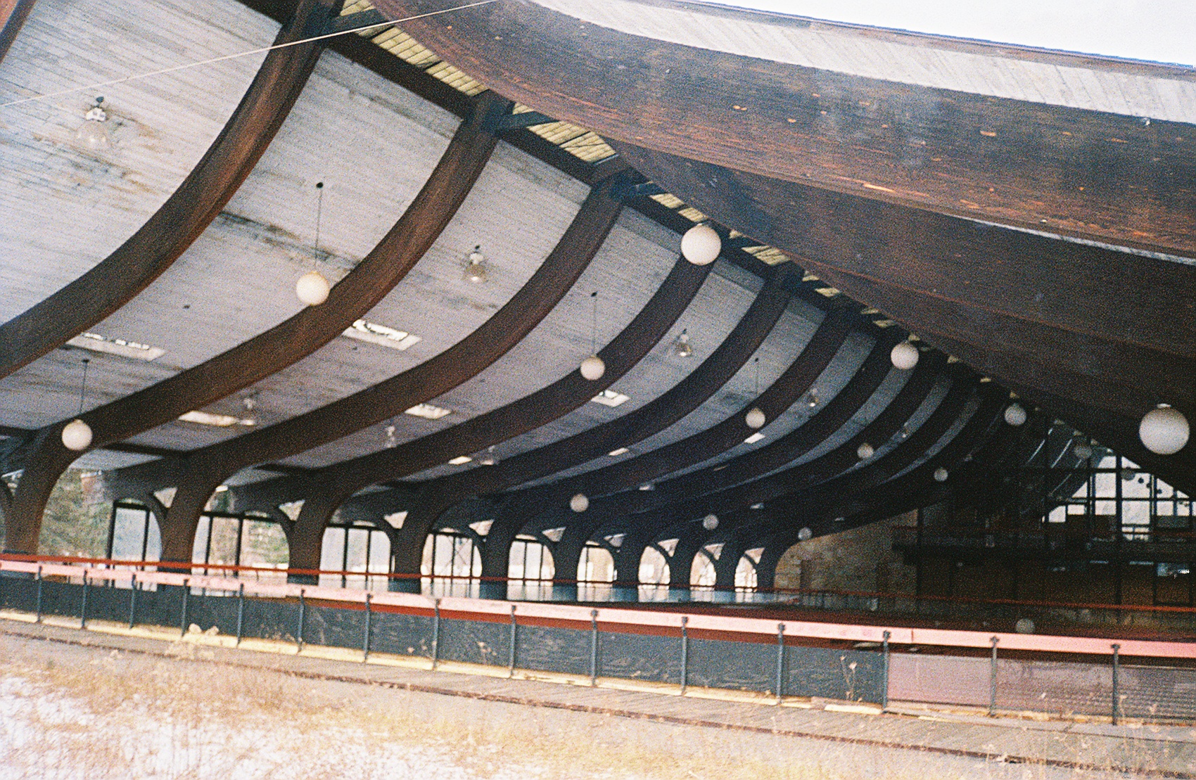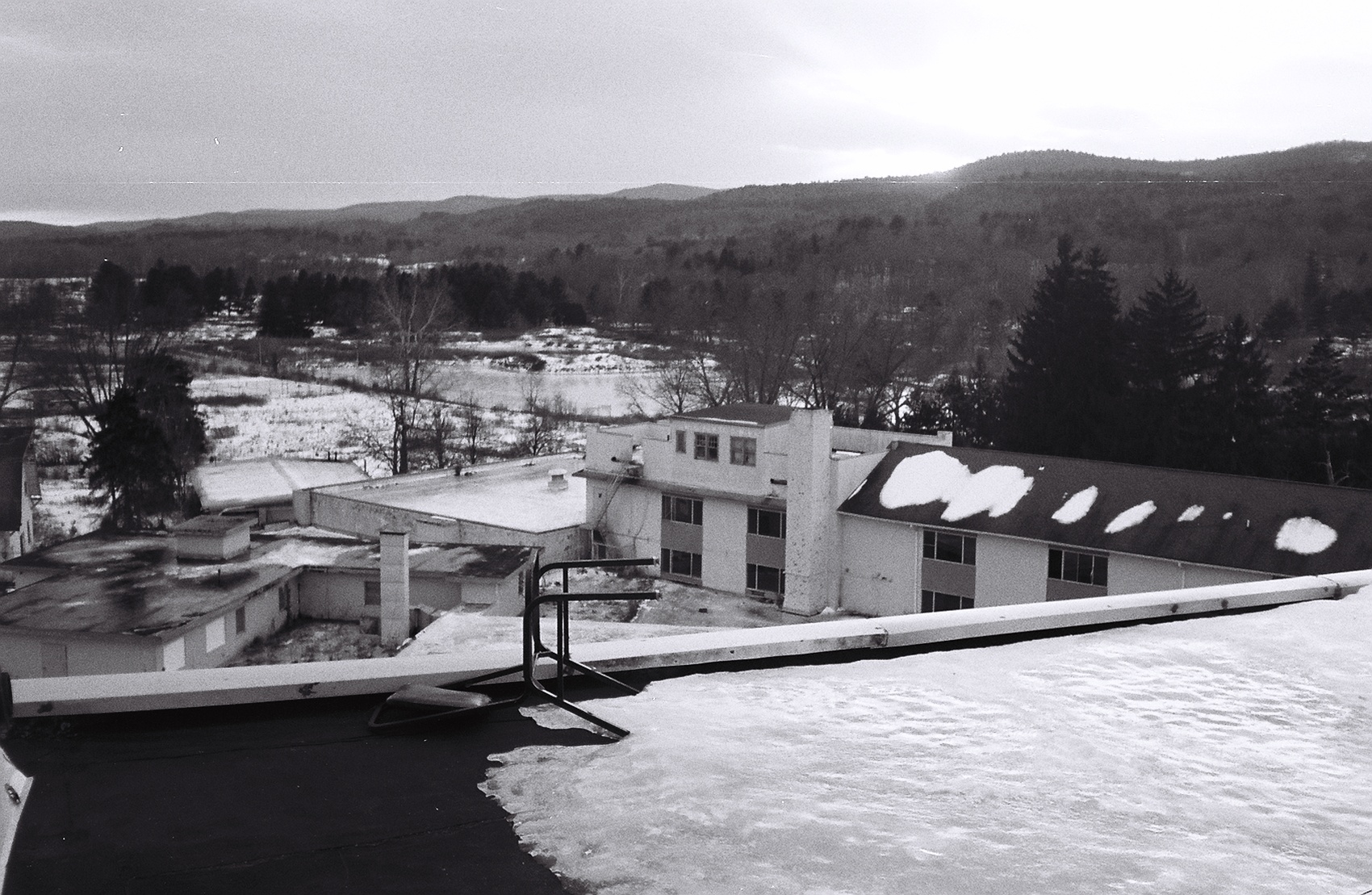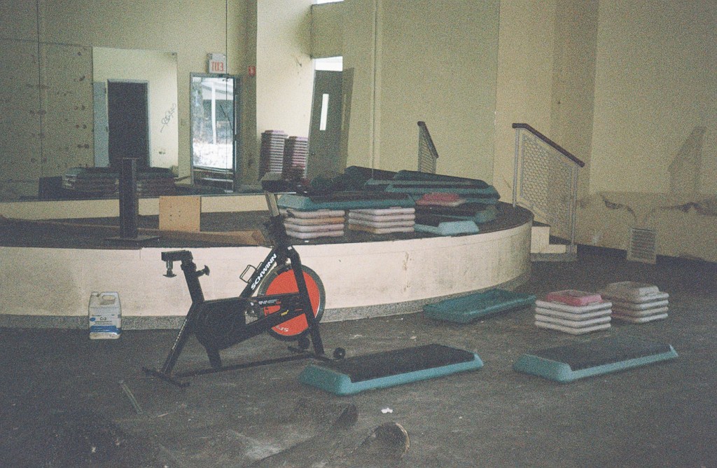 That day Nevele looked like a winter wonderland with snow on the ground and icicles on the tree branches. In addition to exploring the tower, we also went back to the main building with the old reception hall. Last time we didn’t go downstairs because it was too flooded but since it was the middle of winter, all the water froze over and we were able to cross the previously unreachable area. There we found an indoor swimming pool and a gym with old stationary bikes and yoga equipment. Next we walked behind the tower to what looked like a big pavilion and discovered that it was an abandoned iceskating rink. The floor appeared to have been stripped away and in the center was a giant hole where the floor caved in. The last building we explored was next to the children’s day care we saw on our first visit. The building was filled with gigantic turquoise machines and on the lefthand wall was a clipboard with some papers. We figured the machines were boiler systems and the room contained 3 or 4 of them. At that point, we felt satisfied that we had seen all there was to see at Nevele and made our way back home. Seems unlikely it will opening in 2020, or any time soon for that matter.