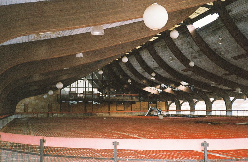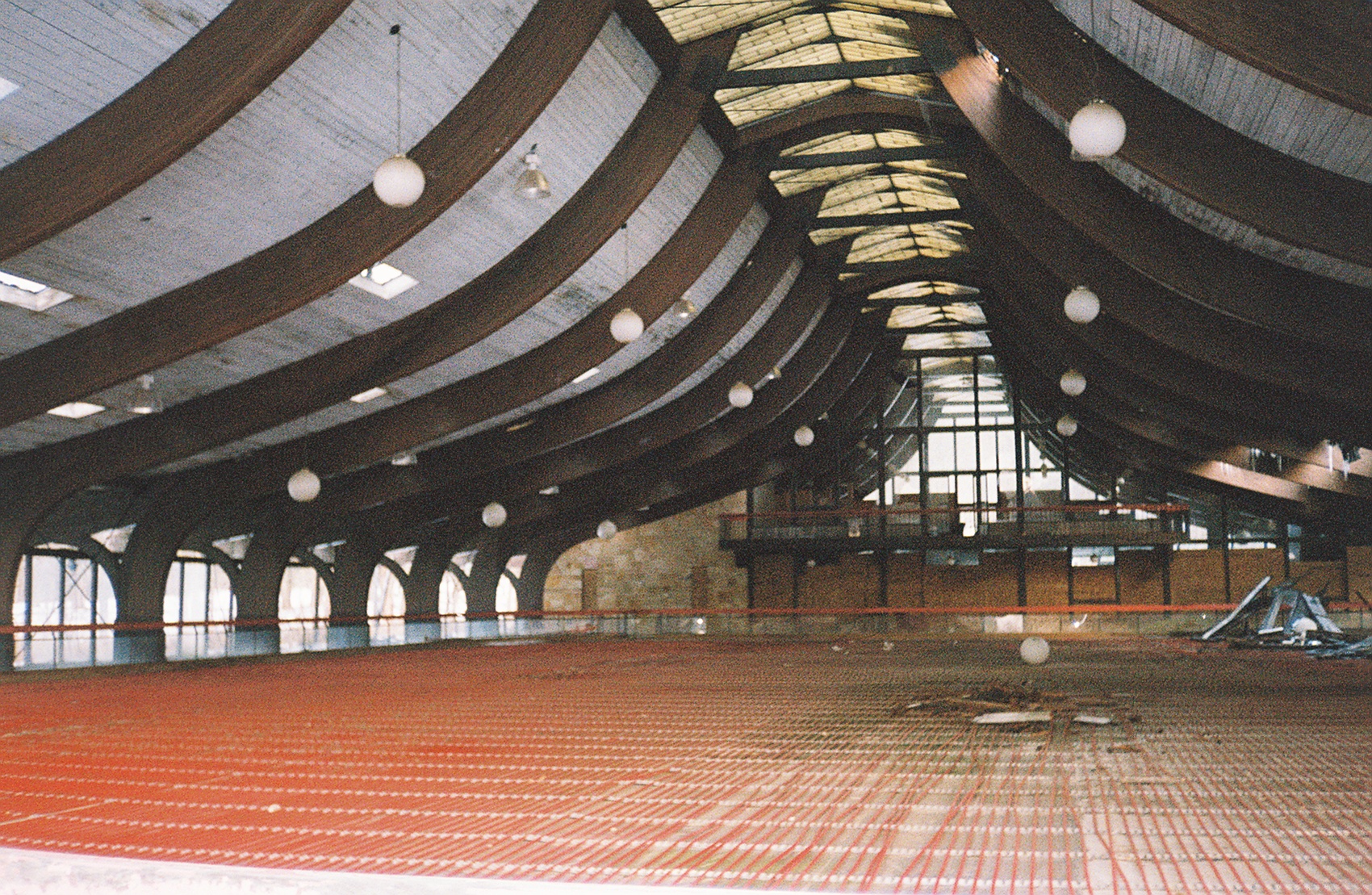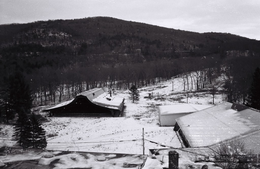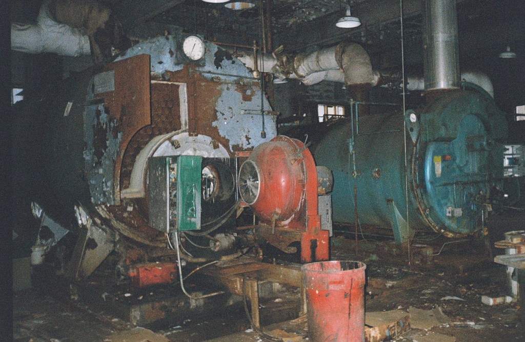 That day Nevele looked like a winter wonderland with snow on the ground and icicles on the tree branches. In addition to exploring the tower, we also went back to the main building with the old reception hall. Last time we didn’t go downstairs because it was too flooded but since it was the middle of winter, all the water froze over and we were able to cross the previously unreachable area. There we found an indoor swimming pool and a gym with old stationary bikes and yoga equipment. Next we walked behind the tower to what looked like a big pavilion and discovered that it was an abandoned iceskating rink. The floor appeared to have been stripped away and in the center was a giant hole where the floor caved in. The last building we explored was next to the children’s day care we saw on our first visit. The building was filled with gigantic turquoise machines and on the lefthand wall was a clipboard with some papers. We figured the machines were boiler systems and the room contained 3 or 4 of them. At that point, we felt satisfied that we had seen all there was to see at Nevele and made our way back home. Seems unlikely it will opening in 2020, or any time soon for that matter.